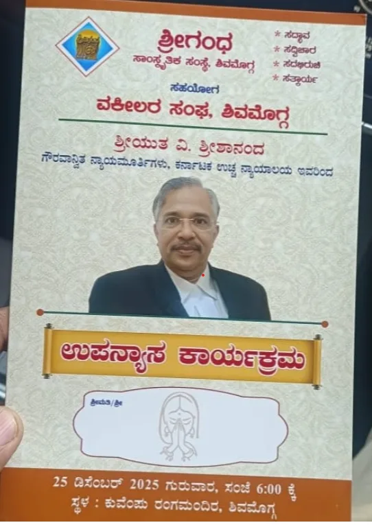 ಮಾಜಿ ಡಿಸಿಎಂ ಕೆ ಎಸ್‌ ಈಶ್ವರಪ್ಪ ಸಂಸ್ಥೆಯ ಕಾರ್ಯಕ್ರಮದಲ್ಲಿ ಹೈಕೋರ್ಟ್‌ ನ್ಯಾಯಮೂರ್ತಿ ಶ್ರೀಶಾನಂದ ಅವರ ಉಪನ್ಯಾಸ; ವಕೀಲರ ಆಕ್ಷೇಪ; ಹೈಕೋರ್ಟ್‌ ರಿಜಿಸ್ಟ್ರಾರ್‌ ಗೆ ಪತ್ರ