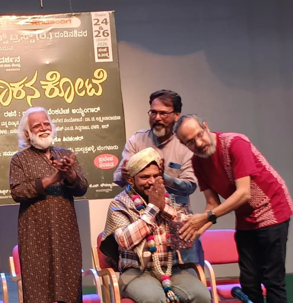 ಇದೆಲ್ಲಾ ಈಗ ಯಾಕೆ ನೆನಪಿಸಿಕೊಳ್ಳಬೇಕಾಯಿತು ಎಂದರೆ, ಮಾರ್ಚ್ 24 ರಂದು ಕಲಾಸಂಗಮ ಹಾಗೂ ರಂಗದರ್ಶನ ರಂಗ ತಂಡದ ರಂಗ ಗೆಳೆಯರು ಕಲಾಗ್ರಾಮದಲ್ಲಿ ನನಗೊಂದು ರಂಗ ಗೌರವ ಸನ್ಮಾನ ಕಾರ್ಯಕ್ರಮವನ್ನು ಏರ್ಪಡಿಸಿದ್ದರು. ಕಲಾದರ್ಶನದ ಈಶ್ವರ್ ದಲ ಹಾಗೂ ರಂಗದರ್ಶನದ ಮೈಕೋ ಶಿವಶಂಕರ್ ರವರು ಫೋನ್ ಮಾಡಿ ಹೇಳಿದಾಗಲೇ ‘ಇದೆಲ್ಲಾ ಬೇಕಿಲ್ಲ, ಬೇರೆ ಯಾರಾದರೂ ಅರ್ಹರನ್ನು ಸನ್ಮಾನಿಸಿ’ ಎಂದು ಹೇಳಿದೆ. ಆದರೆ ಅವರು ಕೇಳಲಿಲ್ಲ. ಅವರ ಪ್ರೀತಿಯ ಒತ್ತಾಯಕ್ಕೆ ಮಣಿದು ಒಪ್ಪಿಕೊಳ್ಳಬೇಕಾಯ್ತು. ಹಾಗೂ ಅಂದು ತುಂಬಿದ ಕಲಾಗ್ರಾಮದ ರಂಗಮಂದಿರದಲ್ಲಿ ರಂಗಗೌರವ ಸಾಂಗವಾಗಿ ನೆರವೇರಿತು. ಪ್ರೀತಿ ಹಾಗೂ ಆತ್ಮೀಯತೆಯಿಂದ ಇಂತಹುದೊಂದು ಸನ್ಮಾನ ಸಮಾರಂಭ ಆಯೋಜಿಸಿದ ರಂಗ ಗೆಳೆಯರಿಗೆ ಧನ್ಯವಾದಗಳು.