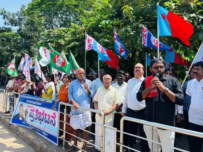 ಪ್ರತಿಭಟನೆಯಲ್ಲಿ ವಿವಿಧ ಸಂಘಟನೆಗಳ ಮುಖಂಡರು ಭಾಗವಹಿಸಿದ್ದರು.