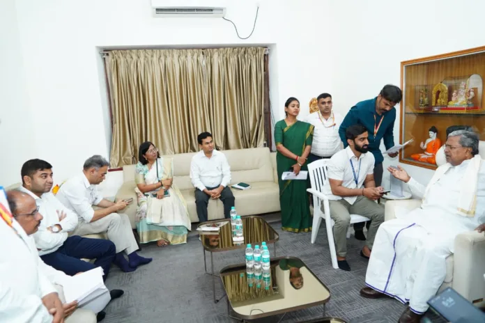ಬೆಂಗಳೂರು: ಸಾಮಾಜಿಕ ಹಾಗೂ ಶೈಕ್ಷಣಿಕ ಸಮೀಕ್ಷೆ ನಡೆಸುವ ಗಣತಿದಾರರು ಇಂದು ಮುಖ್ಯಮಂತ್ರಿ ಸಿದ್ದರಾಮಯ್ಯ ಅವರ ನಿವಾಸಕ್ಕೆ ಆಗಮಿಸಿ ಮಾಹಿತಿ ಪಡೆದುಕೊಂಡರು. ಅವರ ಕಾವೇರಿ ನಿವಾಸದಲ್ಲಿ ಆರ್ಥಿಕ, ಸಾಮಾಜಿಕ ಮತ್ತು ಶೈಕ್ಷಣಿಕ ಸಮೀಕ್ಷೆಗೆ ಆಗಮಿಸಿದ್ದ ಗಣತಿದಾರರಿಗೆ ಮುಖ್ಯಮಂತ್ರಿ ಸಿದ್ದರಾಮಯ್ಯ ಅವರು 45 ನಿಮಿಷಕ್ಕೂ ಹೆಚ್ಚು ಕಾಲ ಸಮಾಧಾನದಿಂದ ಉತ್ತರಿಸಿದರು. ಗಣತಿದಾರರು ಕೇಳಿದ ಎಲ್ಲಾ ಪ್ರಶ್ನೆಗಳಿಗೂ ಮುಖ್ಯಮಂತ್ರಿಗಳು ಉತ್ತರಿಸಿ ಸಂಪೂರ್ಣ ಮಾಹಿತಿ ನೀಡಿದರು.