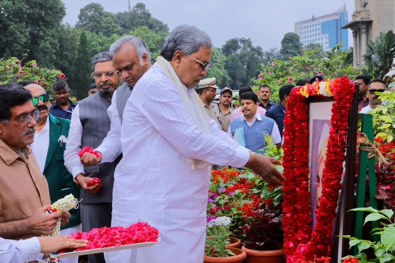 ಬೆಂಗಳೂರು: ವಿಧಾನಸೌಧ ನಿರ್ಮಾತೃ, ಮೈಸೂರು ರಾಜ್ಯದ 2ನೇ ಮುಖ್ಯಮಂತ್ರಿ ಕರ್ನಾಟಕ ಏಕೀಕರಣಕ್ಕಾಗಿ ಶ್ರಮಿಸಿದ ರಾಜ್ಯ ಕಂಡ ಹೆಮ್ಮೆಯ ನಾಯಕ ಕೆಂಗಲ್ ಹನುಮಂತಯ್ಯನವರ ಪುಣ್ಯಸ್ಮರಣೆಯ ಪ್ರಯುಕ್ತ ವಿಧಾನಸೌಧದ ಆವರಣದಲ್ಲಿರುವ ಪ್ರತಿಮೆಗೆ ಮುಖ್ಯಮಂತ್ರಿ ಸಿದ್ದರಾಮಯ್ಯ ಮತ್ತು ಉಪ ಮುಖ್ಯಮಂತ್ರಿ ಡಿಕೆ ಶಿವಕುಮಾರ್ ಅವರು ಮಾಲಾರ್ಪಣೆ ಮಾಡಿ ಬಳಿಕ ಅವರ ಭಾವಚಿತ್ರಕ್ಕೆ ಪುಷ್ಪನಮನ ಸಲ್ಲಿಸಿದರು.