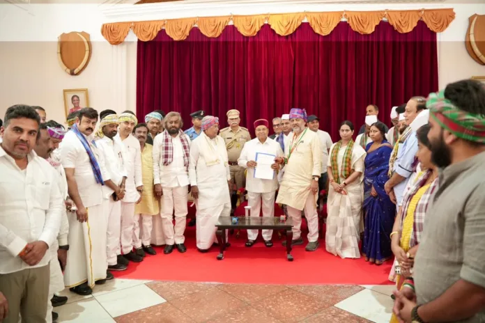 ನಂತರ ಮುಖ್ಯಮಂತ್ರಿ ಹಾಗೂ ಉಪಮುಖ್ಯಮಂತ್ರಿ ನೇತೃತ್ಬದಲ್ಲಿ ಲೋಕಭವನಕ್ಕೆ ತೆರಳಿ ರಾಜ್ಯಪಾಲರಿಗೆ ಮನವಿ ಸಲ್ಲಿಸಲಾಯಿತು.