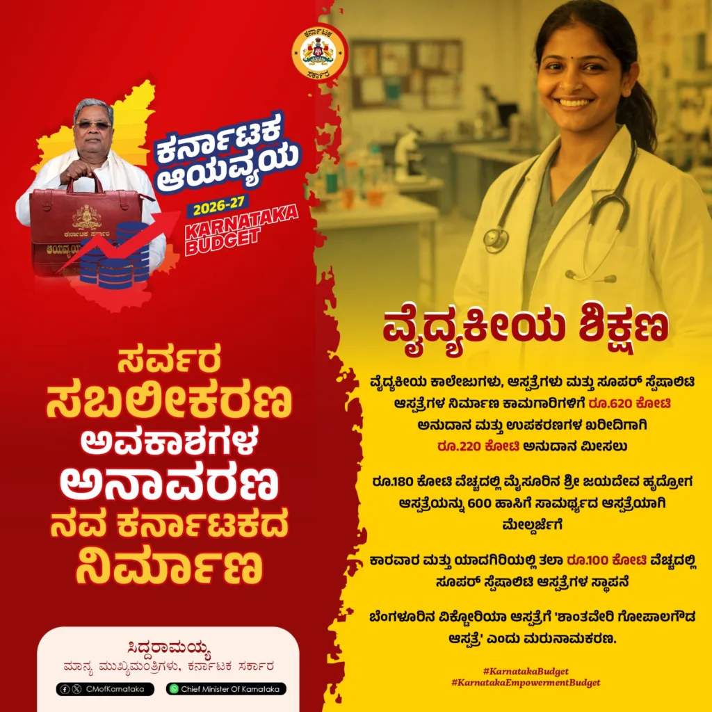 ಆರೋಗ್ಯ ಇಲಾಖೆಯ ಮೂಲಸೌಕರ್ಯ ಅಭಿವೃದ್ಧಿಗೆ 900 ಕೋಟಿ ರೂ. ಅನುದಾನ.
