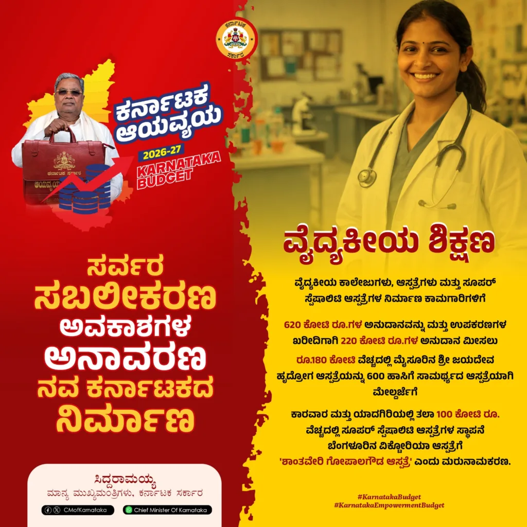 ಹೆಚ್ಚುವರಿಯಾಗಿ 1.35 ಲಕ್ಷ ಡಯಾಲಿಸಿಸ್ ಸೇವೆಗಳನ್ನು ಒದಗಿಸಲು 20 ಕೋಟಿ ರೂ. ಅನುದಾನ.