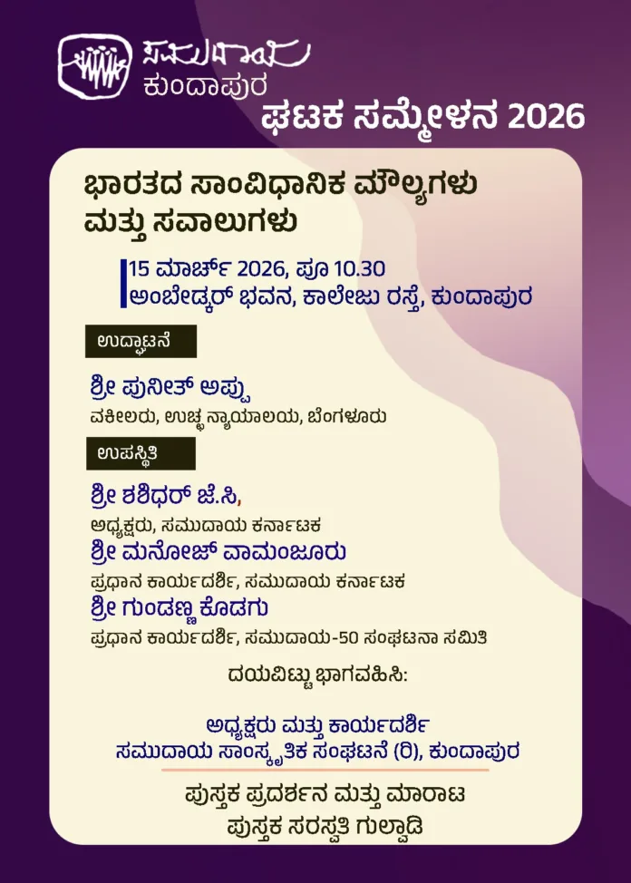 ಮಾರ್ಚ್ 15 ರಂದು ಬೆಳಗ್ಗೆ 10.30 ಅಂಬೇಡ್ಕರ್ ಭವನ, ಕಾಲೇಜು ರಸ್ತೆ, ಕುಂದಾಪುರ