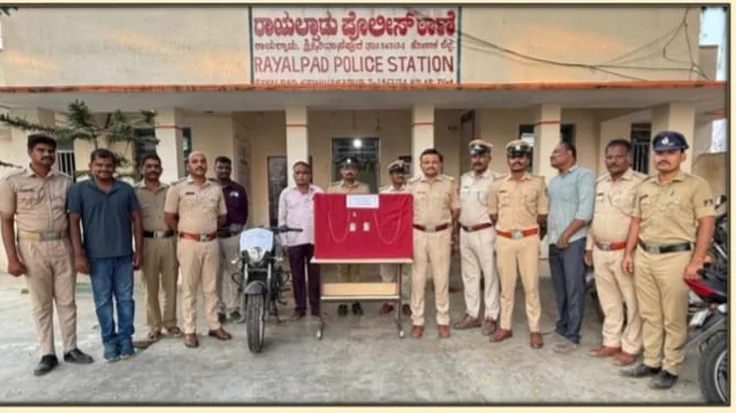 ಕೋಲಾರ : ಶ್ರೀನಿವಾಸಪುರ ತಾಲ್ಲೂಕು ರಾಯಲ್ ಪಾಡು ಪೊಲೀಸ್ ಠಾಣೆಯ ಪೊಲೀಸರು ಅಂತರ ರಾಜ್ಯ ಸುಲಿಗೆಕೋರರಿಬ್ಬರನ್ನು ಬಂಧಿಸಿ ಅವರಿಂದ 8,50,000 ಮೌಲ್ಯದ ಚಿನ್ನಾಭರಣವನ್ನು ವಶಪಡಿಸಿಕೊಂಡಿದ್ದಾರೆ