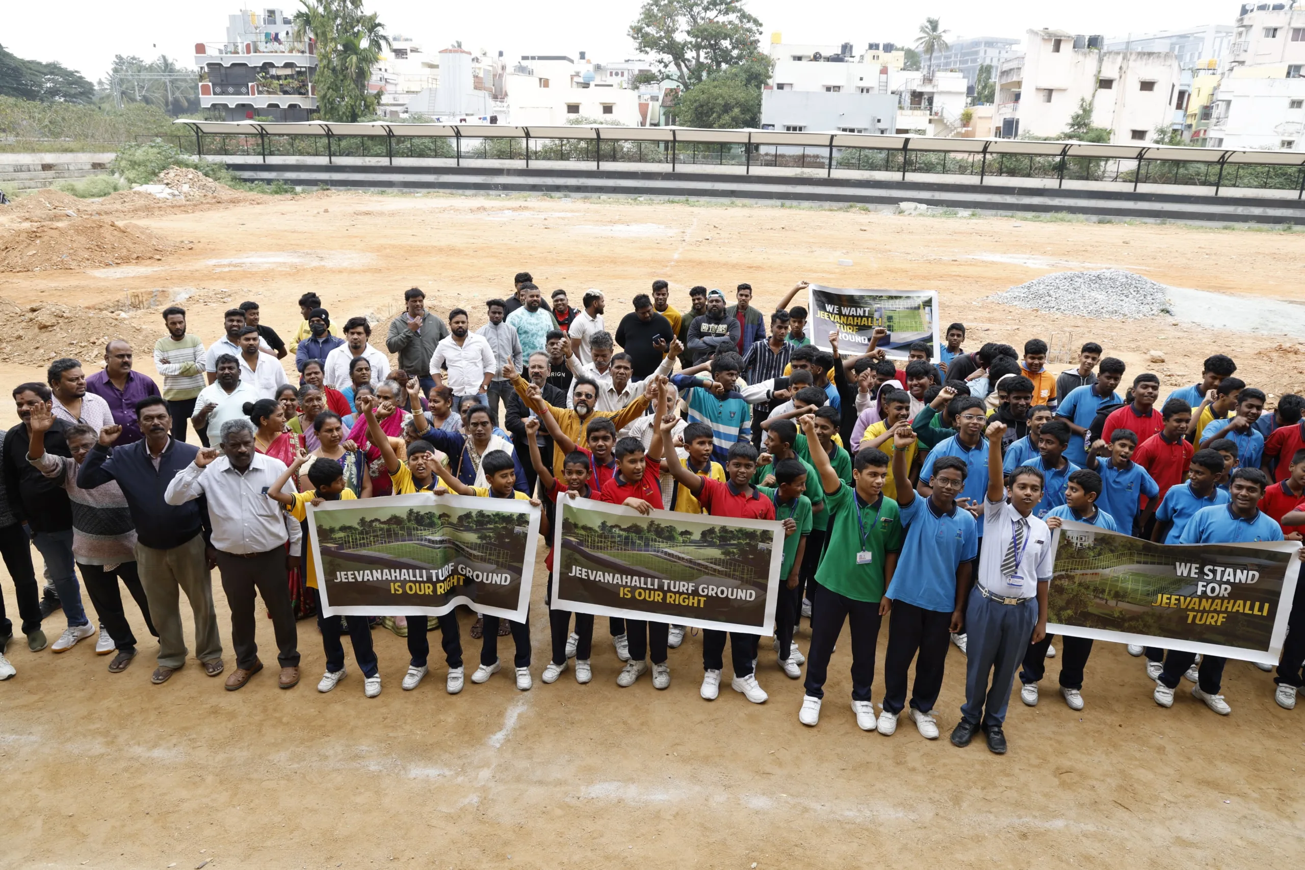 ಇಂಧನ ಸಚಿವರು ಹಾಗೂ ಸರ್ವಜ್ಞ ನಗರದ ಶಾಸಕರಾದ ಕೆ.ಜೆ.ಜಾರ್ಜ್ ಅವರ ದೂರದೃಷ್ಟಿಯ ಫಲವಾಗಿ ಜೀವನಹಳ್ಳಿಯಲ್ಲಿ ಅಂತಾರಾಷ್ಟ್ರೀಯ ಮಾನದಂಡದಲ್ಲಿ ಫುಟ್ಬಾಲ್ ಟರ್ಫ್ ನಿರ್ಮಾಣವಾಗುತ್ತಿದೆ. ಆದರೆ, ಈ ಟರ್ಫ್ ಅನುಕೂಲಸ್ಥರಿಗೆ ಮಾತ್ರವೇ ಹೊರತು ಸಾಮಾನ್ಯರಿಗೆ ಈ ಕ್ರೀಡೆಯ ಸೌಲಭ್ಯವಿರುವುದಿಲ್ಲ. ಕ್ರೀಡಾಂಗಣ ಬಳಕೆಗೆ ಹಣ ಪೀಕಿಸುತ್ತಾರೆ ಎಂದು ಸ್ಥಳೀಯರೆಂದು ಬಿಂಬಿಸಿಕೊಂಡಿದ್ದವರು ಕೆಲ ದಿನಗಳ ಹಿಂದೆ ಅಪಪ್ರಚಾರ ಮಾಡಿದ್ದರು. ಇದನ್ನು ವಿರೋಧಿಸಿ, ಸರ್ವಜ್ಞನ ನಗರದ ಶಾಲಾ ಮಕ್ಕಳು ಸೇರಿದಂತೆ ಸ್ಥಳೀಯರು ಕ್ರೀಡಾಂಗಣದ ಬಳಿ ಪ್ರತಿಭಟನೆ ನಡೆಸಿದರು.