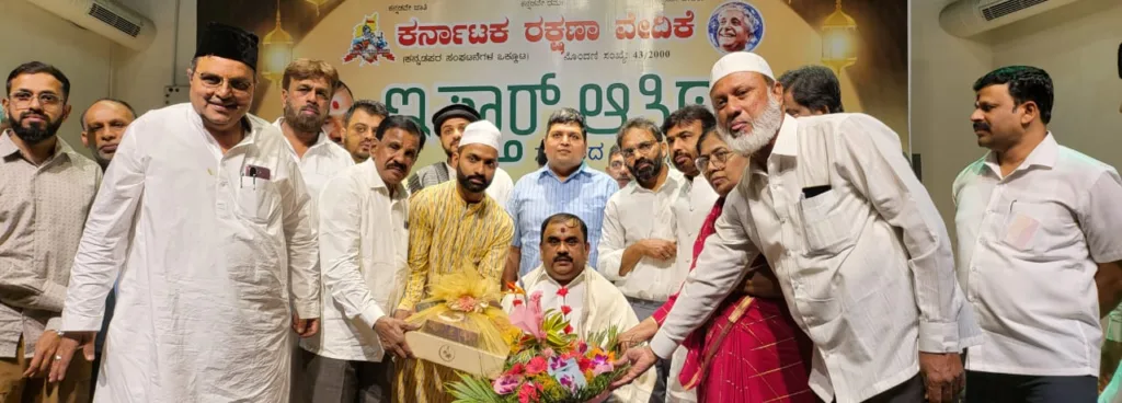 ಬೆಂಗಳೂರಿನ ಎಚ್. ಬಿ ಆರ್ ಬಡಾವಣೆಯ ಬ್ಯಾರಿ ಸೌಹಾರ್ದ ಭವನದಲ್ಲಿ ಇಂದು ಸಂಜೆ ಕರ್ನಾಟಕ ರಕ್ಷಣಾ ವೇದಿಕೆ ಇಫ್ತಾರ್ ಆತಿಥ್ಯ, ಸಂವಾದ- ಸತ್ಕಾರ ಕಾರ್ಯಕ್ರಮವನ್ನು ಏರ್ಪಡಿಸಿತ್ತು.