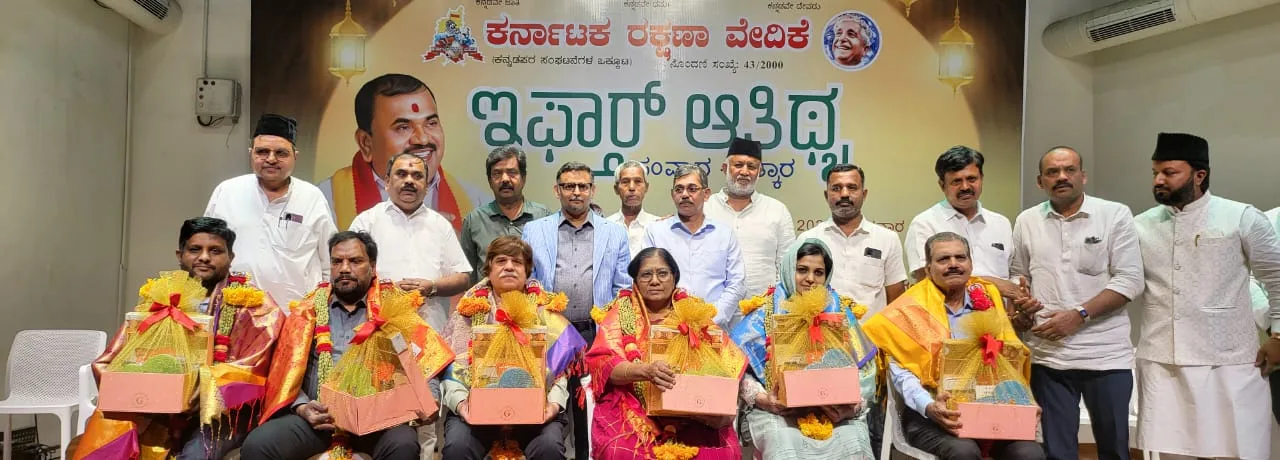 ಬೆಂಗಳೂರಿನ ಎಚ್. ಬಿ ಆರ್ ಬಡಾವಣೆಯ ಬ್ಯಾರಿ ಸೌಹಾರ್ದ ಭವನದಲ್ಲಿ ಇಂದು ಸಂಜೆ ಕರ್ನಾಟಕ ರಕ್ಷಣಾ ವೇದಿಕೆ ಇಫ್ತಾರ್ ಆತಿಥ್ಯ, ಸಂವಾದ- ಸತ್ಕಾರ ಕಾರ್ಯಕ್ರಮವನ್ನು ಏರ್ಪಡಿಸಿತ್ತು.