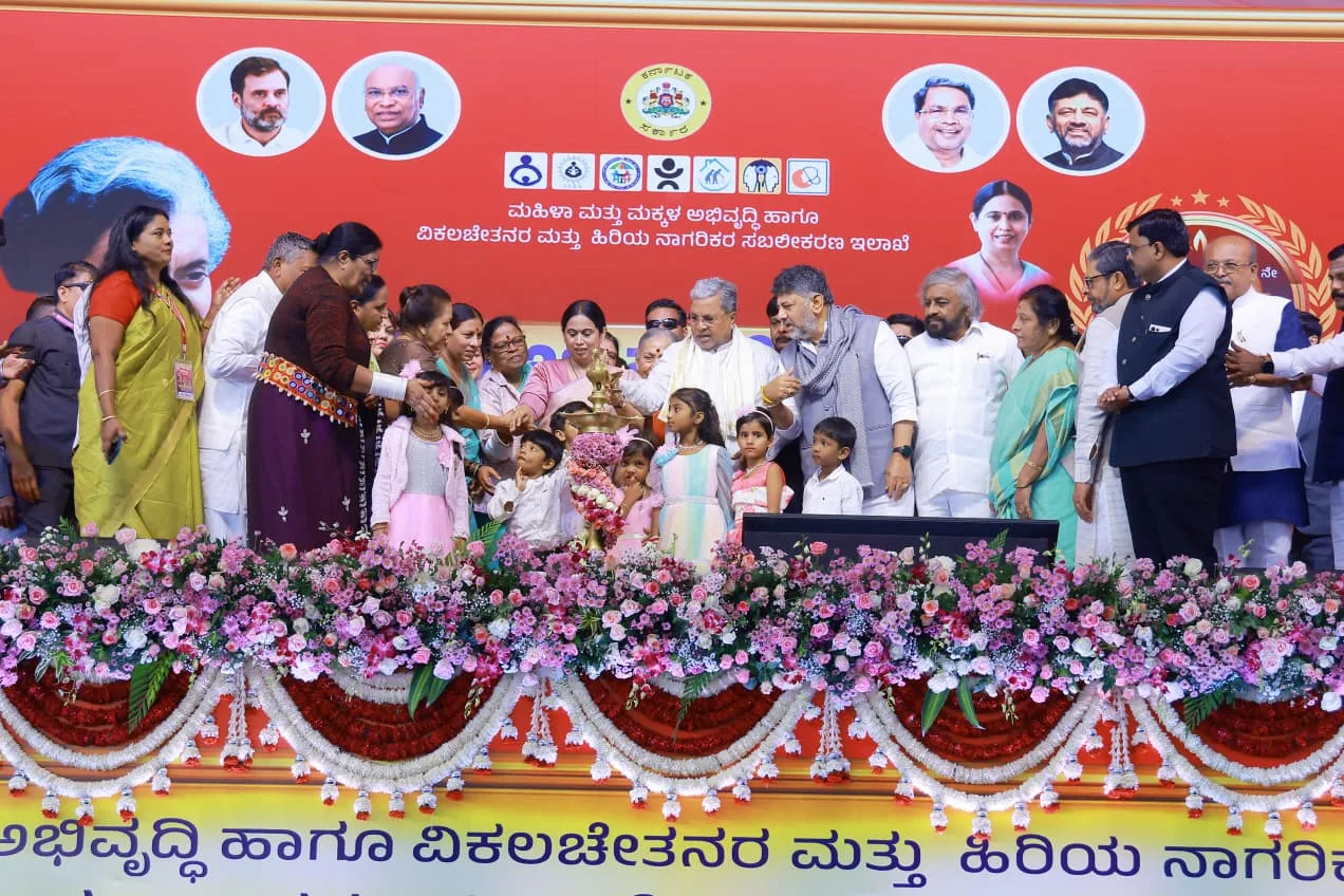 ಅರಮನೆ ಮೈದಾನದಲ್ಲಿ ಮಹಿಳಾ ಮತ್ತು ಮಕ್ಕಳ ಅಭಿವೃದ್ಧಿ ಹಾಗೂ ವಿಕಲಚೇತನರ ಮತ್ತು ಹಿರಿಯ ನಾಗರಿಕರ ಸಬಲೀಕರಣ ಇಲಾಖೆ ವತಿಯಿಂದ ಆಯೋಜಿಸಲಾಗಿದ್ದ ಸಮಗ್ರ ಶಿಶು ಅಭಿವೃದ್ಧಿ ಯೋಜನೆಯ (ಐಸಿಡಿಎಸ್) ಸುವರ್ಣ ಮಹೋತ್ಸವ ಕಾರ್ಯಕ್ರಮದಲ್ಲಿ ಮಹಿಳೆಯರ ಸ್ವಾವಲಂಬನೆಗಾಗಿ ಆರಂಭಿಸಲಾಗಿರುವ ಗೃಹಲಕ್ಷ್ಮೀ ವಿವಿಧೋದ್ದೇಶ ಸಹಕಾರ ಸಂಘ, ಮಹಿಳೆಯರ ರಕ್ಷಣೆಗಾಗಿ ಆರಂಭಿಸಿರುವ ಅಕ್ಕಪಡೆ ಹಾಗೂ ಬಡಮಕ್ಕಳಿಗೂ ಗುಣಮಟ್ಟದ ಶಿಕ್ಷಣ ಒದಗಿಸುವ 5000 ಅಂಗನವಾಡಿ ಕೇಂದ್ರಗಳಲ್ಲಿ ಎಲ್ಕೆಜಿ, ಯುಕೆಜಿ ತರಗತಿಗಳನ್ನು ಗಣ್ಯರು ಉದ್ಘಾಟಿಸಿದರು.