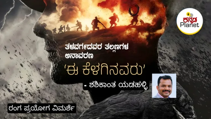 ನಾಗರೀಕ ಸಮಾಜ ಎಂದು ಹೆಮ್ಮೆಪಡುವ ಜನರ ನಡುವೆಯೇ ಅಸ್ತಿತ್ವದಲ್ಲಿರುವ ಅನಾಗರೀಕ ಪ್ರಪಂಚವೊಂದನ್ನು ಅನಾವರಣಗೊಳಿಸುವ ‘ಈ ಕೆಳಗಿನವರು’ ನಾಟಕ ನೋಡುಗರನ್ನು ಬೆಚ್ಚಿ ಬೀಳಿಸುತ್ತದೆ. ಸಮಾಜದ ಮೇಲ್ ಸ್ತರದಲ್ಲಿದ್ದವರಿಗೆ ನಿಕೃಷ್ಟ ಲೋಕವೊಂದರ ದರ್ಶನ ಮಾಡಿಸುವ ಮೂಲಕ ವ್ಯವಸ್ಥೆಯ ಅವ್ಯವಸ್ಥೆಯನ್ನು ತೆರೆದಿಡುತ್ತದೆ. ಅನೇಕ ಸ್ಲಂಗಳನ್ನು ನೋಡಿದ್ದೇವೆ. ಕಡುಬಡವರ ಗಲ್ಲಿಗಳಲ್ಲಿ ಸುತ್ತಾಡಿದ್ದೇವೆ. ಬಡತನದ ಬಗ್ಗೆ ಭಾಷಣಗಳನ್ನು ಕೇಳಿದ್ದೇವೆ, ಮಾಧ್ಯಮಗಳಲ್ಲಿ ತಳ ಸಮುದಾಯದ ಬಗ್ಗೆ ವೀಕ್ಷಿಸಿದ್ದೇವೆ, ಆದರೆ ಮಾಡಲು ಕೆಲಸವಿಲ್ಲದೆ, ತಿನ್ನಲು ಕೂಳಿಲ್ಲದೆ, ಇರಲು ಸರಿಯಾದ ಸೂರಿಲ್ಲದೆ, ಉಡಲು ನೆಟ್ಟಗಿನ ಬಟ್ಟೆಗಳಿಲ್ಲದೇ, ಕನಿಷ್ಟ ಅಗತ್ಯಗಳೂ ಇಲ್ಲದೇ ಬದುಕುವ ಯಕಶ್ಚಿತ್ ಮನುಷ್ಯರ ದಿನನಿತ್ಯದ ಅನಾಥ ಬದುಕನ್ನು ನೇರವಾಗಿ ನೋಡಿ ಅನುಭವಿಸಬೇಕೆಂದಿದ್ದರೆ ‘ಈ ಕೆಳಗಿನವರು’ ನಾಟಕವನ್ನೊಮ್ಮೆ ನೋಡಲೇಬೇಕು’.