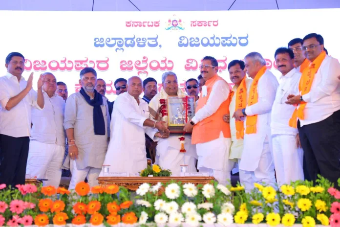 ಅವರು ಇಂದು ವಿಜಯಪುರ ಜಿಲ್ಲಾಡಳಿತ ಮತ್ತು ಜಿಲ್ಲಾ ಪಂಚಾಯತ್ ವಿಜಯಪುರ  ಜಿಲ್ಲೆ ವತಿಯಿಂದ ವಿಜಯಪುರ ದ ವಿ. ಬಿ ಶಾಲಾ ಆವರಣದಲ್ಲಿ  ಆಯೋಜಿಸಲಾಗಿದ್ದ ವಿಜಯಪುರ ಜಿಲ್ಲೆಯ ವಿವಿಧ ಯೋಜನೆಯ ಕಾಮಗಾರಿಗಳ ಉದ್ಘಾಟನೆ ಹಾಗೂ ಶಂಕುಸ್ಥಾಪನೆ ಸಮಾರಂಭದಲ್ಲಿ ಭಾಗವಹಿಸಿ ಕಾರ್ಯಕ್ರಮ ವನ್ನು ಉದ್ಘಾಟನೆ ಮಾಡಿ ನಂತರ ವಿವಿಧ ಕಾಮಗಾರಿಗಳಿಗೆ ಶಂಕುಸ್ಥಾಪನೆ ನೇರೆವೇರಿಸಿ  ಮಾತನಾಡಿದರು.