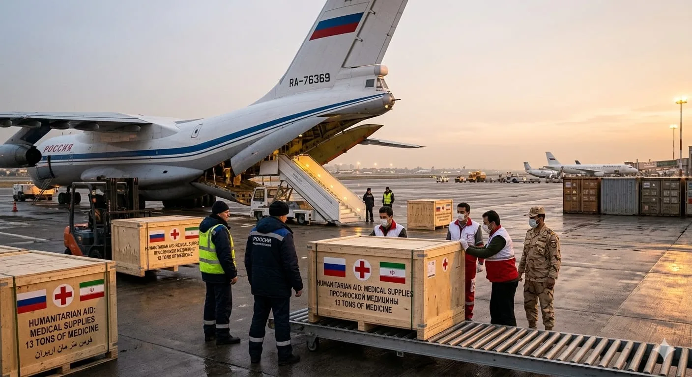 ರಷ್ಯಾ ಸರ್ಕಾರದ ತುರ್ತು ಸಚಿವಾಲಯ (ಎಮರ್‌ಕಾಮ್) 13 ಟನ್‌ಗಳಿಗೂ ಹೆಚ್ಚಿನ ವೈದ್ಯಕೀಯ ಸಾಮಗ್ರಿಗಳನ್ನು ಇರಾನ್‌ಗೆ ಕಳುಹಿಸಿದ್ದು, ಈ ನೆರವು ಅಜರ್‌ಬೈಜಾನ್ ಮೂಲಕ ಹಾದು ಇರಾನ್ ತಲುಪಿದೆ. ಯುದ್ಧದಿಂದ ಬಳಲಿದ ಇರಾನಿನ ಆರೋಗ್ಯ ವ್ಯವಸ್ಥೆಗೆ ದೊಡ್ಡ ಬೆಂಬಲವಾಗಿ ಈ ಸಹಾಯ ಮಾಡಲಾಗಿದೆ.