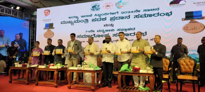 ವಿಧಾನಸೌಧದ ಬ್ಯಾಂಕ್ವೆಟ್ ಹಾಲ್ ನಲ್ಲಿ ನಡೆದ 71ನೇ ವನ್ಯಜೀವಿ ಸಪ್ತಾಹದ ಸಮಾರೋಪ ಸಮಾರಂಭದಲ್ಲಿ ಪರಿಸರ, ಅರಣ್ಯ ಸಂರಕ್ಷಕರಿಗೆ ಮುಖ್ಯಮಂತ್ರಿ ಪದಕ ವಿತರಿಸಿ ಮಾತನಾಡಿದರು.