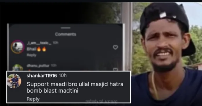 ಕಳೆದ ವರ್ಷ  ದುಷ್ಕರ್ಮಿಗಳಿಂದ ಹತ್ಯೆಗೀಡಾಗಿದ್ದ ಸುಹಾಸ್‌ ಶೇಟ್ಟಿಯ ಭಾವಚಿತ್ರ ಇರುವ ಇನ್ಸ್ಟಾಗ್ರಾಮ್‌ ಖಾತೆಯಲ್ಲಿ ,ಶಂಕರ್11916 (shankar11916) ಎಂಬ ಕಿಡಿಗೇಡಿ ಯುವಕನೊಬ್ಬ ‘ಉಳ್ಳಾಲದ ಮಸೀದಿ ಹತ್ತಿರ ಬಾಂಬ್ ಸ್ಫೋಟಿಸುತ್ತೇನೆ, ಸಪೋರ್ಟ್ ಮಾಡಿ’ ಎಂದು ಕಾಮೆಂಟ್ ಮಾಡಲಾಗಿತ್ತು. ಈ ಕಮೆಂಟ್ ಸಾಮಾಜಿಕ ಜಾಲತಾಣಗಳಲ್ಲಿ ವೈರಲ್ ಆಗಿ ಭಾರೀ ಆಕ್ರೋಶಕ್ಕೆ ಕಾರಣವಾಗಿದೆ.