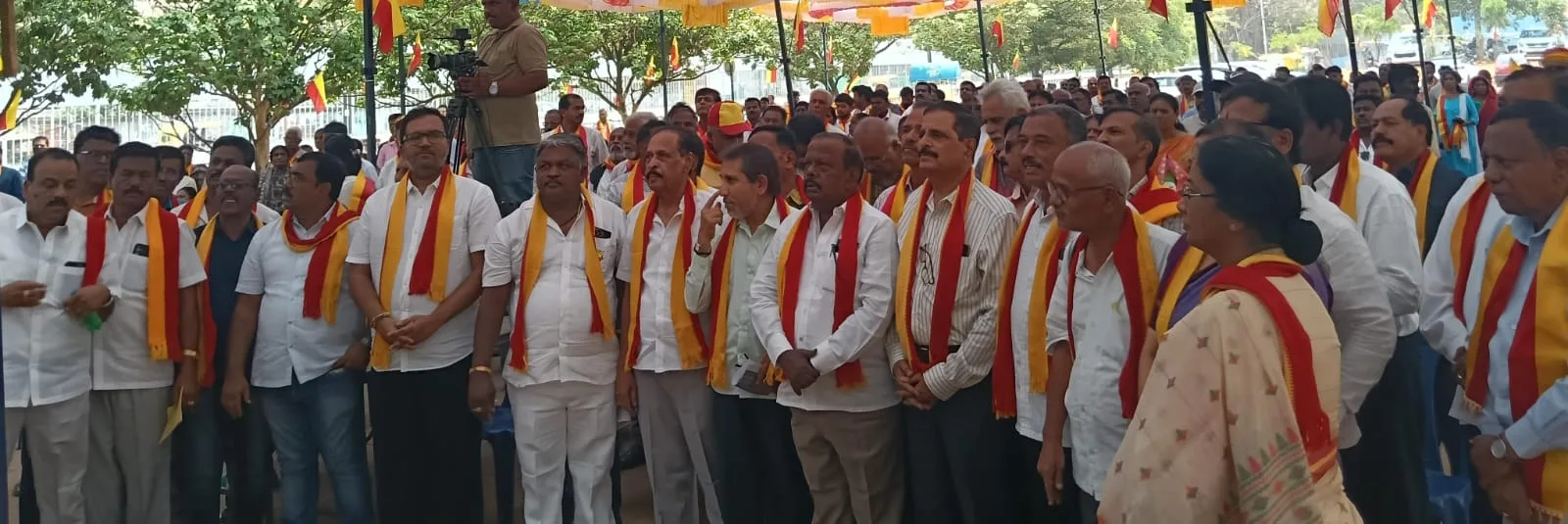 ಧರಣಿಯಲ್ಲಿ ಡಾ.ರಾಜ್ ಕುಮಾರ್ ಆಭಿಮಾನಿಗಳ ಸಂಘದ ಅಧ್ಯಕ್ಷ ಸಾ.ರಾ.ಗೋವಿಂದ್, ಸಾಹಿತಿಗಳಾದ ಡಾ.ಮನು ಬಳಿಗಾರ್, ಡಾ.ರೀಟಾ, ಕನ್ನಡಪರ ಹೋರಾಟಗಾರರಾದ ರಾ.ನಂ.ಚಂದ್ರಶೇಖರ್, ಡಾ.ಆರ್.ಎ.ಪ್ರಸಾಧ್, ವ.ಚ.ಚನ್ನೇಗೌಡ, ಪದ್ಮಿನಿ ನಾಗರಾಜ್, ಸಂಘದ ಪದಾಧಿಕಾರಿಗಳಾದ ಅಂತೋಣಿ ರಾಜ್, ಜಾನ್ ಬ್ರಿಟ್ಟೋ, ಬರ್ತಲೋಮಿಯೋ, ಜಾರ್ಜ್ ಕುಮಾರ್, ದೇವಕುಮಾರ್ ಸೇರಿದಂತೆ ಹಲವರು ಭಾಗವಹಿಸಿದ್ದರು.